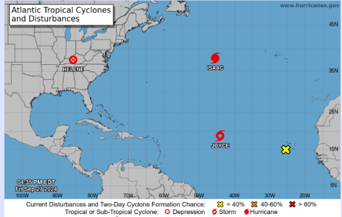 NHC는 열대 태풍 이삭과 조이스에 대한 주의보를 내렸는데 이 두 태풍은 3일 내로 소멸될 것으로 예상되고 있다.