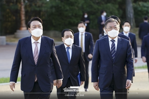 문재인 대통령과 윤석열 당선인이 3월 28일(월) 저녁 6시 청와대 상춘재에서 만찬을 겸한 만남을 가졌다.