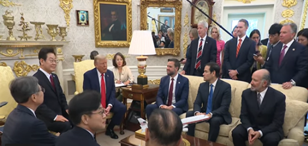 이번 회담에서 이재명 대통령은 도널드 트럼프 대통령에게 황금색으로 치장된 집무실 분위기 대화를 시작으로 “전세계 유일 분단 국가인 한반도에 새 길을 열어 평화 확립에 힘을 써달라.” 라고 말하며 ‘피스메이커로서 김정은 국무위원장과의 만남’ 을 요청하기도 했다.
