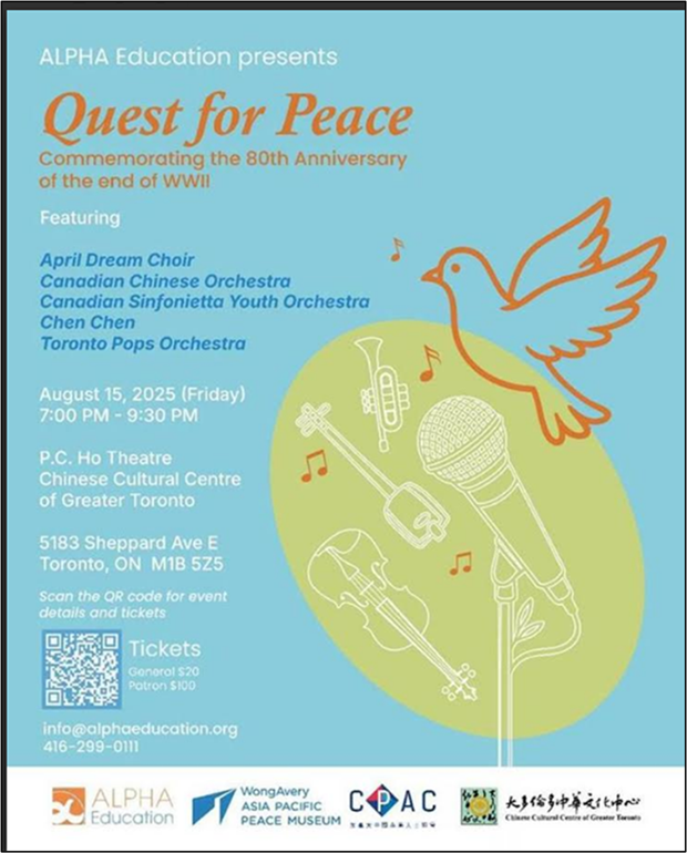 토론토 시민 합창단 사월의꿈 합창단이 8월 15일(금) 오후 7시, 토론토 중국문화센터 P.C. Ho Theatre에서 열리는 ‘ Quest for Peace ’ 평화 콘서트의 오프닝 무대를 장식했다.