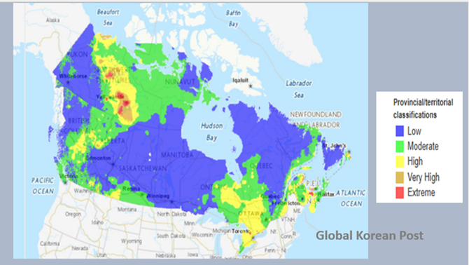이외에 브리티쉬 콜럼비아와 앨버타는 ‘높음’ 단계를 나타내는 3단계에 놓여 있다.