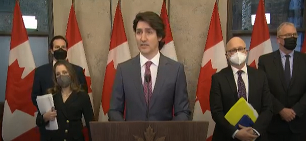 On Feb. 14, 2022, Prime Minister Justin Trudeau was joined by Deputy Prime Minister Chrystia Freeland, Justice Minister David Lametti, Public Safety Minister Marco Mendicino and Emergency Preparedness Minister Bill Blair. / Global Korean Post