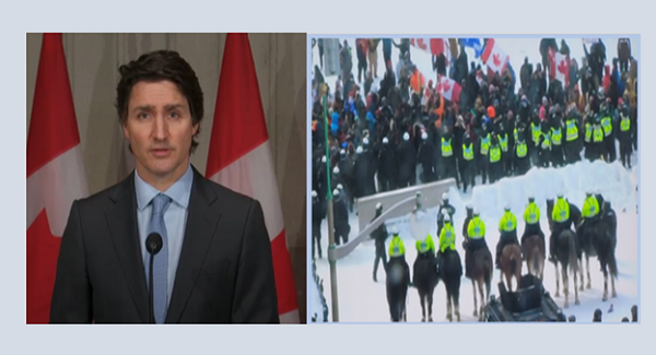 오타와 도심을 3주간 점거했던 시위대를 몰아내기 위해 온타리오가 비상사태를 선포했고 또 트뤼도 총리도 연방정부 차원의 비상사태법을 캐나다 역사상 처음으로 발동시켰다.
