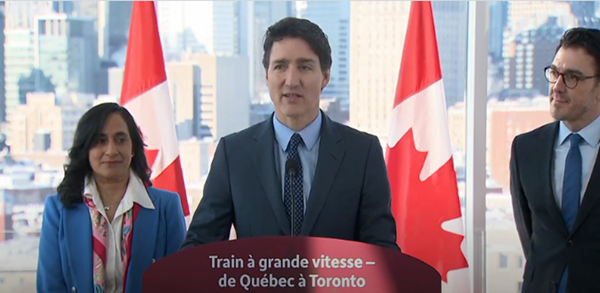저스틴 트뤼도 총리는 지난 19일(수) 몬트리올에서 토론토와 퀘벡시를 오가는 고속 기차 관련 발표를 했다.