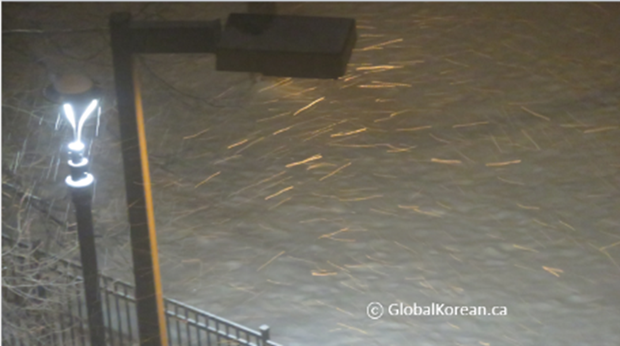 가로등불 아래 휘날리는 눈 (2025.2) / Credit: 재스민 강 (Global Korean Post : GlobalKorean.ca)