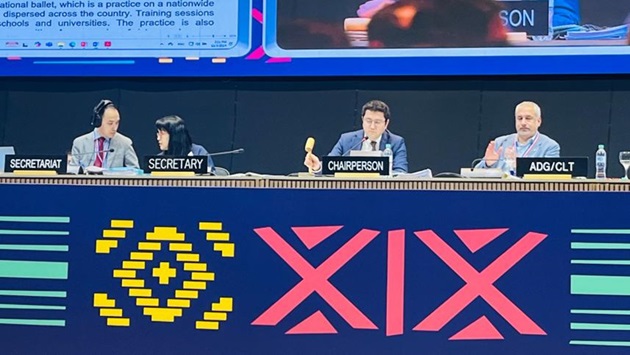 ‘한국의 장 담그기 문화’의 유네스코 인류무형유산 등재를 선언하는 제19차 유네스코 무형유산보호협약 정부간위원회 카몰 무카타로브로 부의장 (국가유산청)