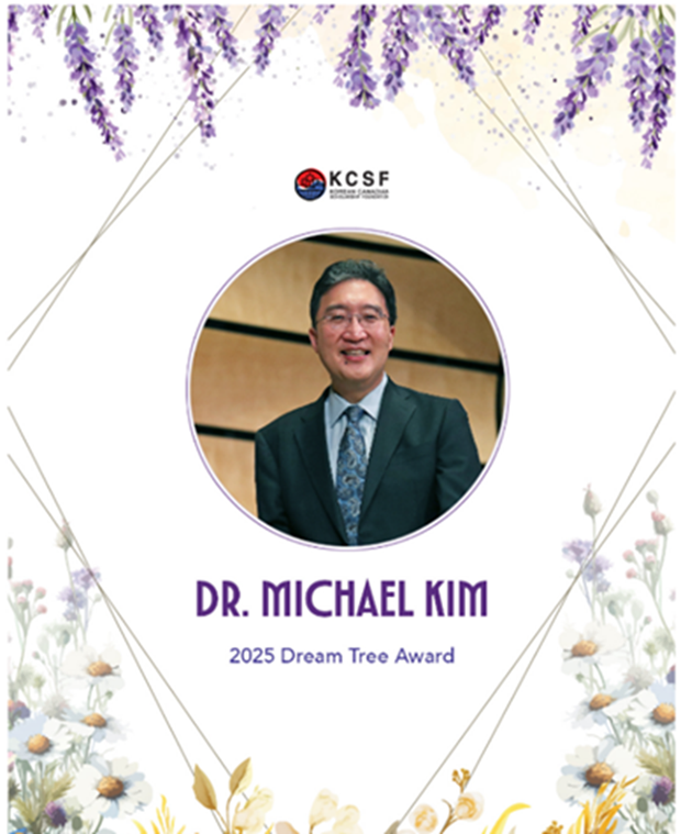 캐나다한인장학재단 (Korean Canadian Scholarship Foundation, 이하 KCSF)은 웨스턴 대학교 (Western University) 돈 라이트 음악대학 (Don Wright Faculty of Music) 학장 마이클 김 (Michael Kim) 박사를 2025년 ‘드림트리어워드 (Dream Tree Award)’ 수상자로 선정했다고 발표했다. 드림트리어워드는 캐나다 및 해외에서 두드러진 성취를 이루며 캐나다 한인 커뮤니티의 위상을 높인 인물에게 수여되는 영예로운 상이다.